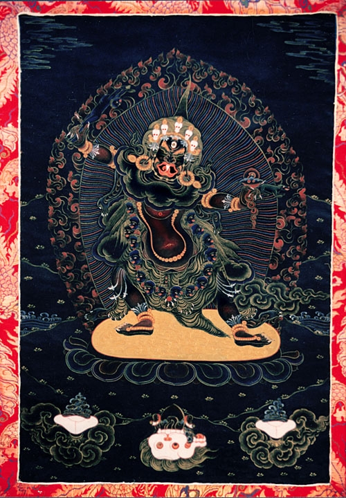 hand Ekajati holds the ripped out heart of justification. A black dog—symbol of