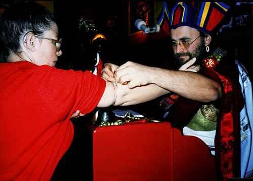 Ngala Nor’dzin Pamo was the first of Ngak’chang Rinpoche and Khandro Déchen’s apprentices to take ordination. At that time the meaning and importance of ngak’phang ordination was little understood among Ngak’chang Rinpoche and Khandro Déchen’s apprentices and only a few people attended the ceremony. Nevertheless the event was a powerful experience that is still vividly remembered by Ngala Nor’dzin and her husband, ’ö-Dzin Tridral.